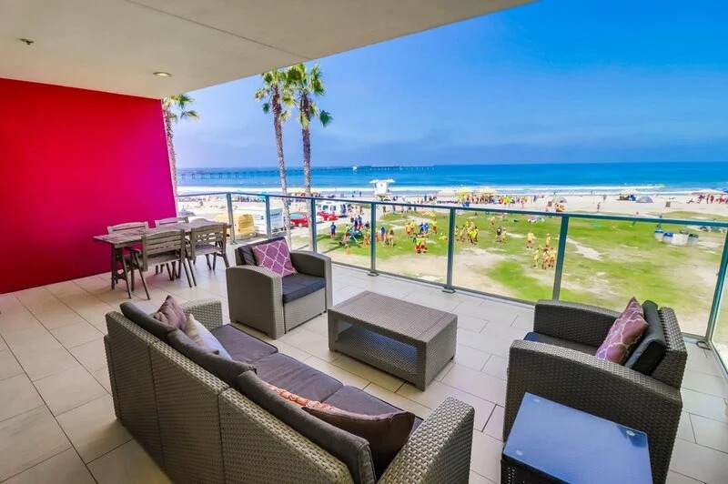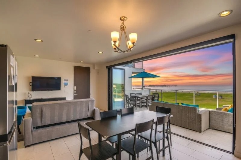 Bright beachside stay featuring open living space, ocean views, and walkable access to parks, surf, restaurants, and the famous Ocean Beach vibe that makes this neighborhood a favorite destination.